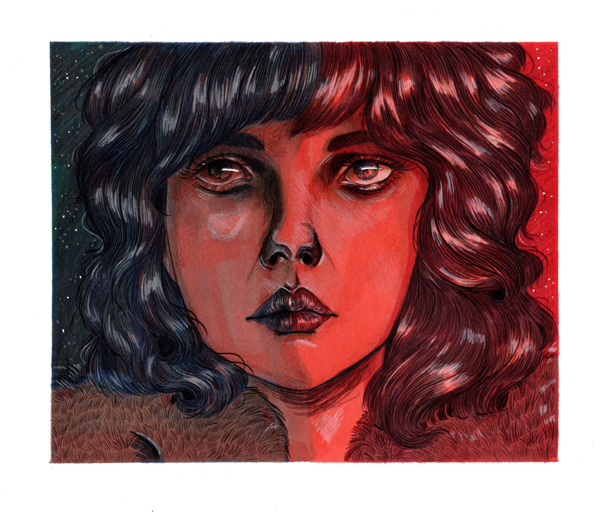 Approximately 7.72" X 9.06" (19.6cm X 23 cm) One off original piece. Prismacolor markers/ pencils on Bristol paper.